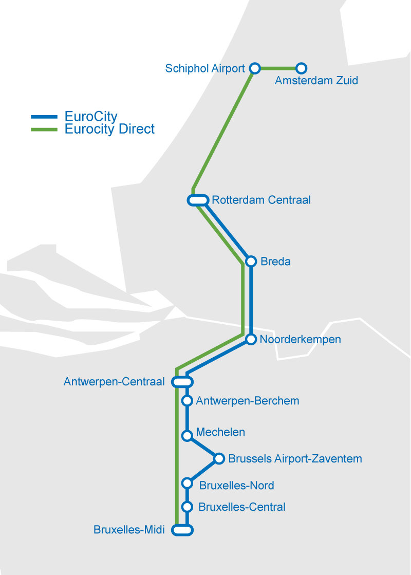 | Stopovers in Antwerpen-Centraal, Schiphol and Rotterdam Centraal. | |